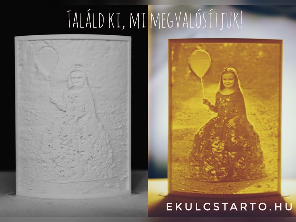 A "3D fénykép" egy igazán ritka és egyedi ajándék. Örökítsd meg a legszebb pillanatokat egy különleges 3D nyomtatott ajándékkal. A 3D-s kép csak egy fehér dombornyomatnak néz ki, de ha hátulról megvilágítjuk - pl. lámpa elé helyezzük, akkor rögtön előtűnik a szürkeárnyalatos fénykép.